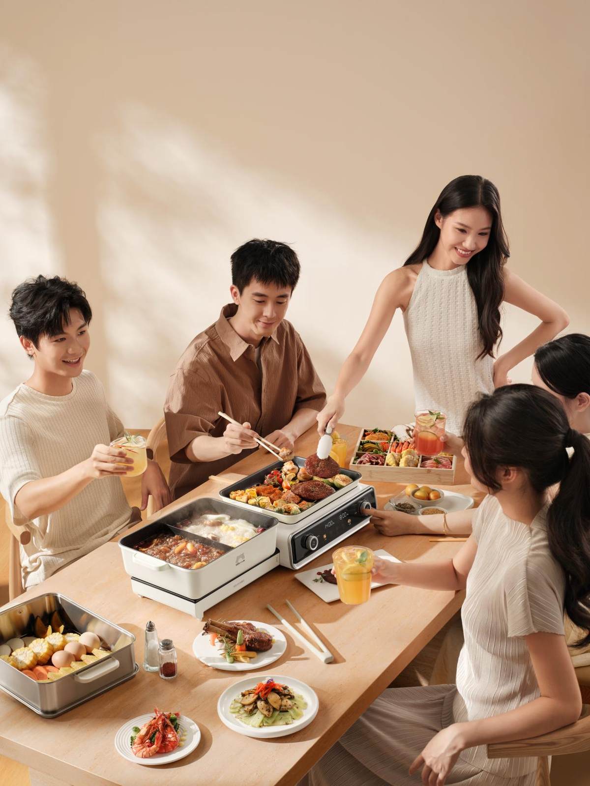 今年广受市场欢迎的“叠叠锅”,既满足了年轻人聚餐众口难调的痛点,又贴心为用户“还愿”。一位用户在评价中写道“很喜欢多功能锅,希望可以多多开发新品”。研发团队结合当下年轻人热衷组局,需要同时满足火锅、烧烤、涮煮、煎炸等多口味的具体需求,升级迭代了新品叠叠锅。它可以一边涮火锅,一边烤肉,还能顺便蒸玉米、煎牛排、焖大虾、焗蛋包饭等,真正一锅“征服”一桌人。并且,它还通过创新专利可折叠设计,用完收好占地仅0.1㎡,小户型厨房也能轻松收纳,完美击中年轻人利益点。