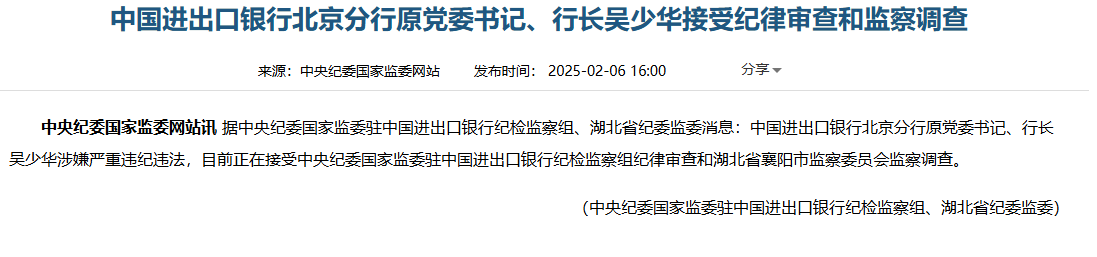 2024年,中国进出口银行有多位分行行长、副行长因违法违纪被调查。